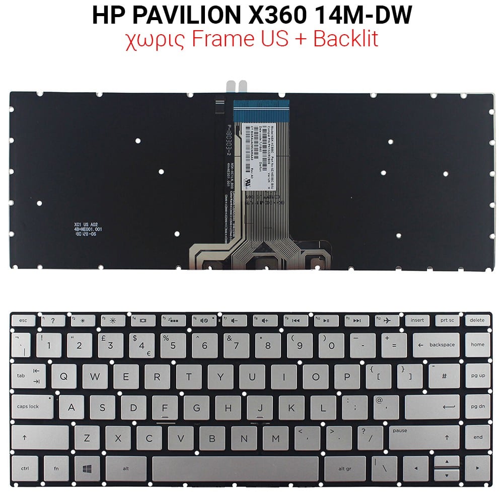 Πληκτρολόγιο HP PAVILION 14-BF NO FRAMES US + BACKLIT SILVER
