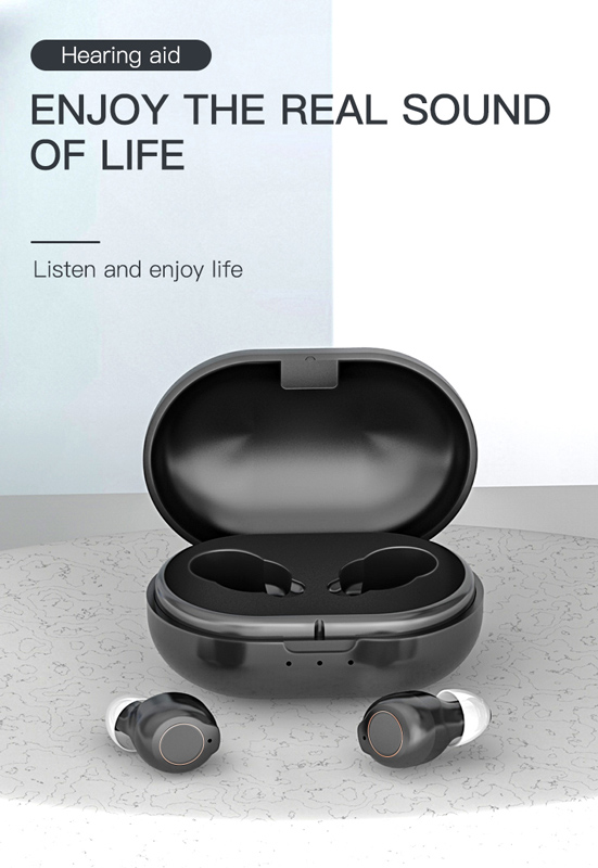 POWERTECH ακουστικά βαρηκοΐας PT-1247 με θήκη, επαναφορτιζόμενα, μαύρα