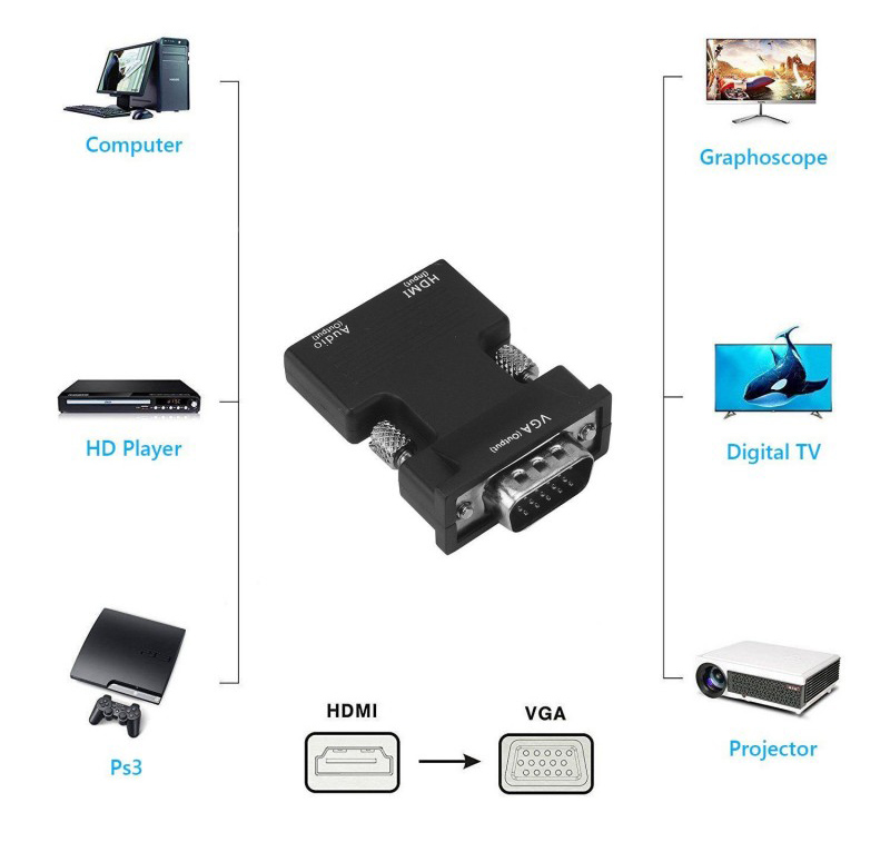 Converter για σύνδεση συσκευών με HDMI έξοδο σε οθόνες και προτζέκτορες με VGA είσοδο.