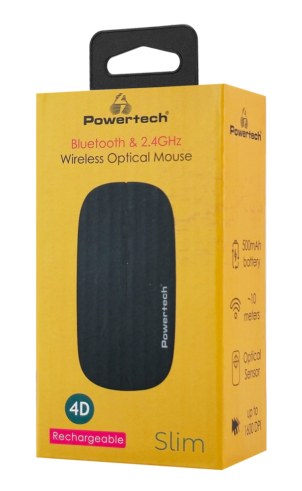 POWERTECH ασύρματο ποντίκι PT-1381, 2.4GHz & Bluetooth, έως 1600DPI, 500mAh, μαύρο