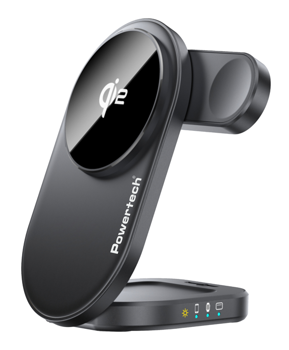 POWERTECH ασύρματος φορτιστής PT-1491, 3 σε 1, Qi2, 15W, μαύρος