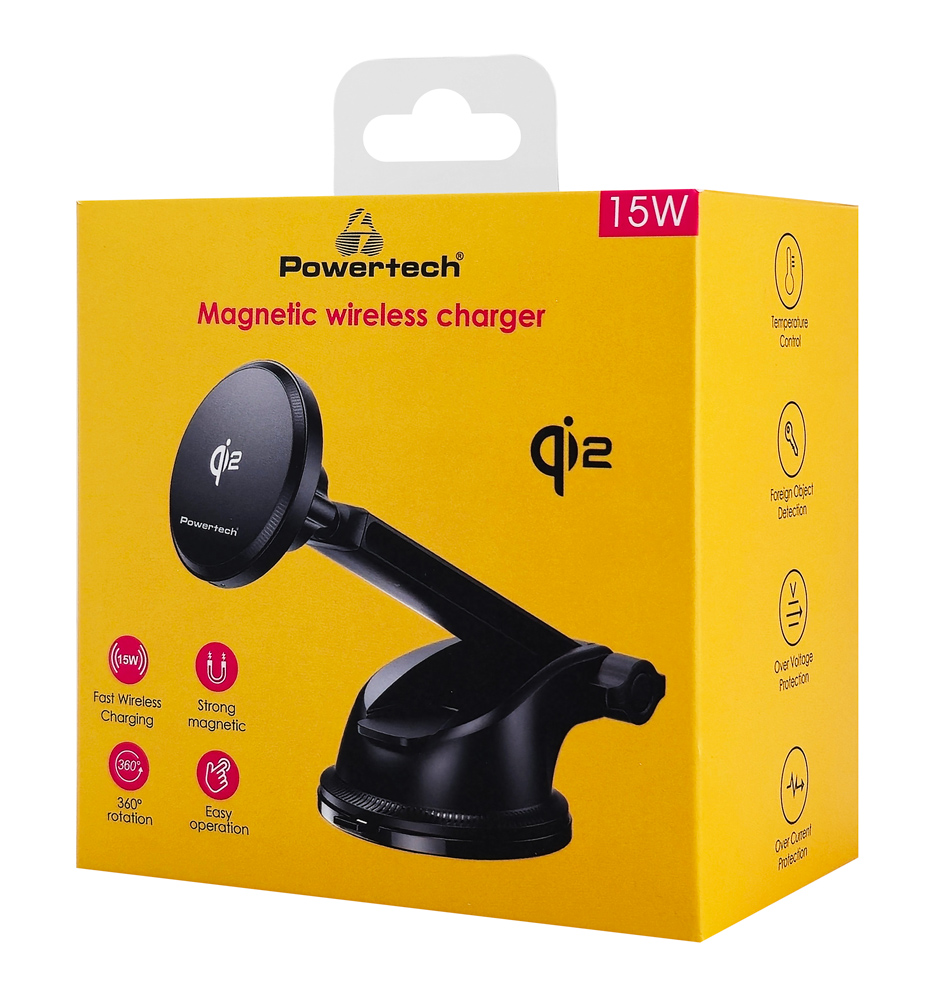 POWERTECH ασύρματος φορτιστής & βάση smartphone αυτοκινήτου PT-1492, Qi2, 15W, μαύρος