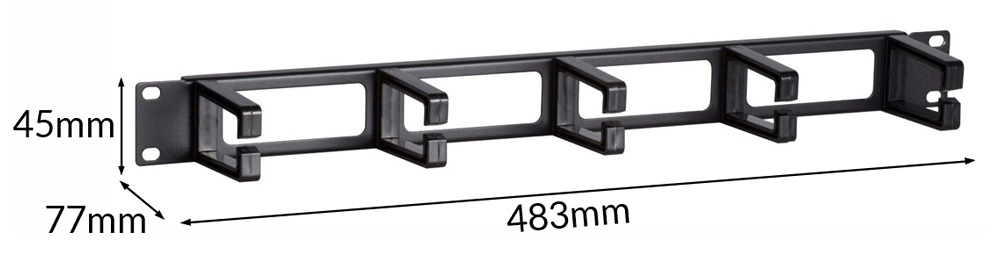 Cable management της Powertech κατάλληλο για τοποθέτηση σε 19″ καμπίνες rack. Διαθέτει 4 ανοίγματα για να περνούν τα καλώδια και 5 γάντζους για την καλύτερη οργάνωση τους.