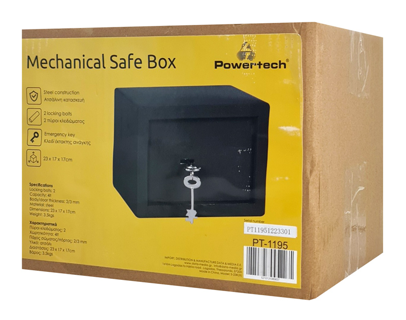 POWERTECH χρηματοκιβώτιο ασφαλείας PT-1195 με κλειδί, 23x17x17cm, 3.5kg