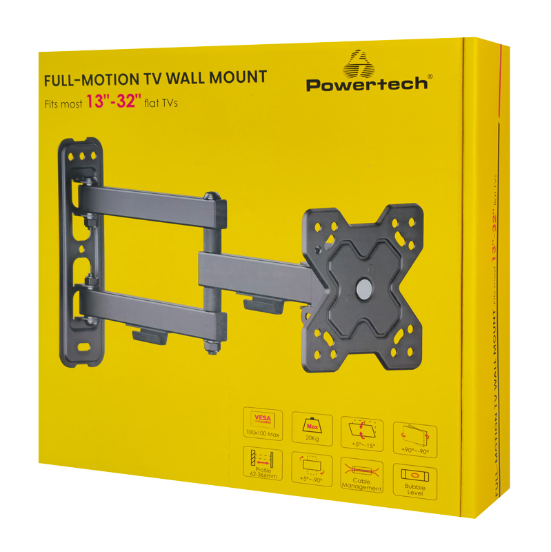POWERTECH επιτοίχια βάση τηλεόρασης PT-1279, 13-32″, έως 20kg, full motion