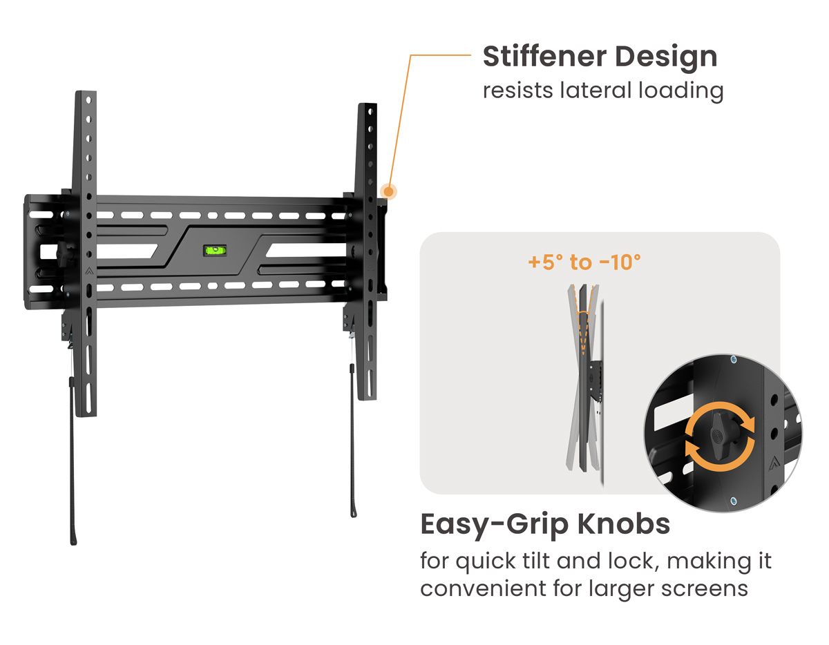 POWERTECH επιτοίχια βάση τηλεόρασης PT-1370, 37-86″, έως 75kg, ρυθμιζόμενη κλίση