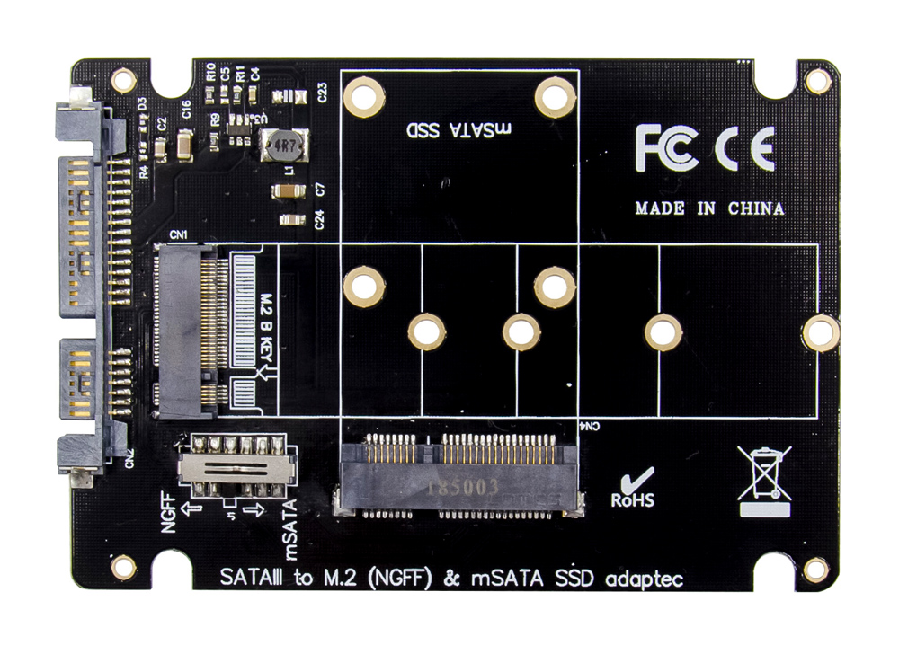 POWERTECH κάρτα μετατροπής 2.5″ SATA σε M.2 B & mSATA SSD ST525, 6Gbps