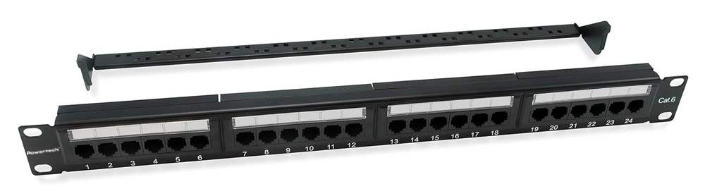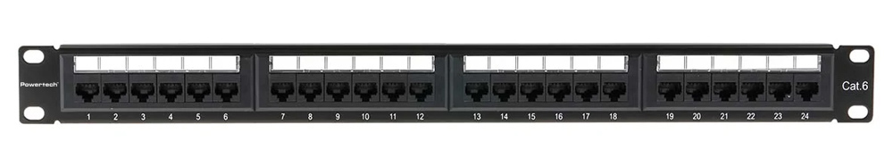 Patch panel της Powertech κατάλληλο για τοποθέτηση σε 19″ καμπίνες rack. Διαθέτει 24 αριθμημένες θύρες RJ45 για την εγκατάσταση έως και 24 καλωδίων δικτύου. Κάθε θύρα διαθέτει ετικέτα επισήμανσης για τον εύκολη αναγνώριση των καλωδίων.