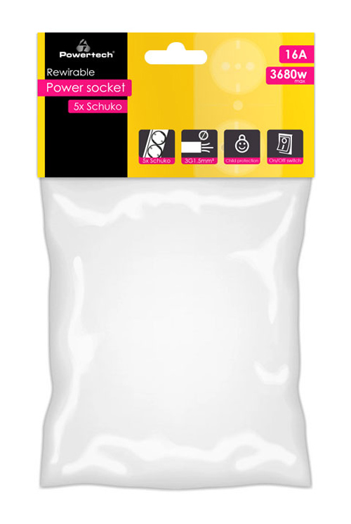 POWERTECH πολύπριζο PT-886, 5x schuko, 16A, χωρίς καλώδιο, λευκό