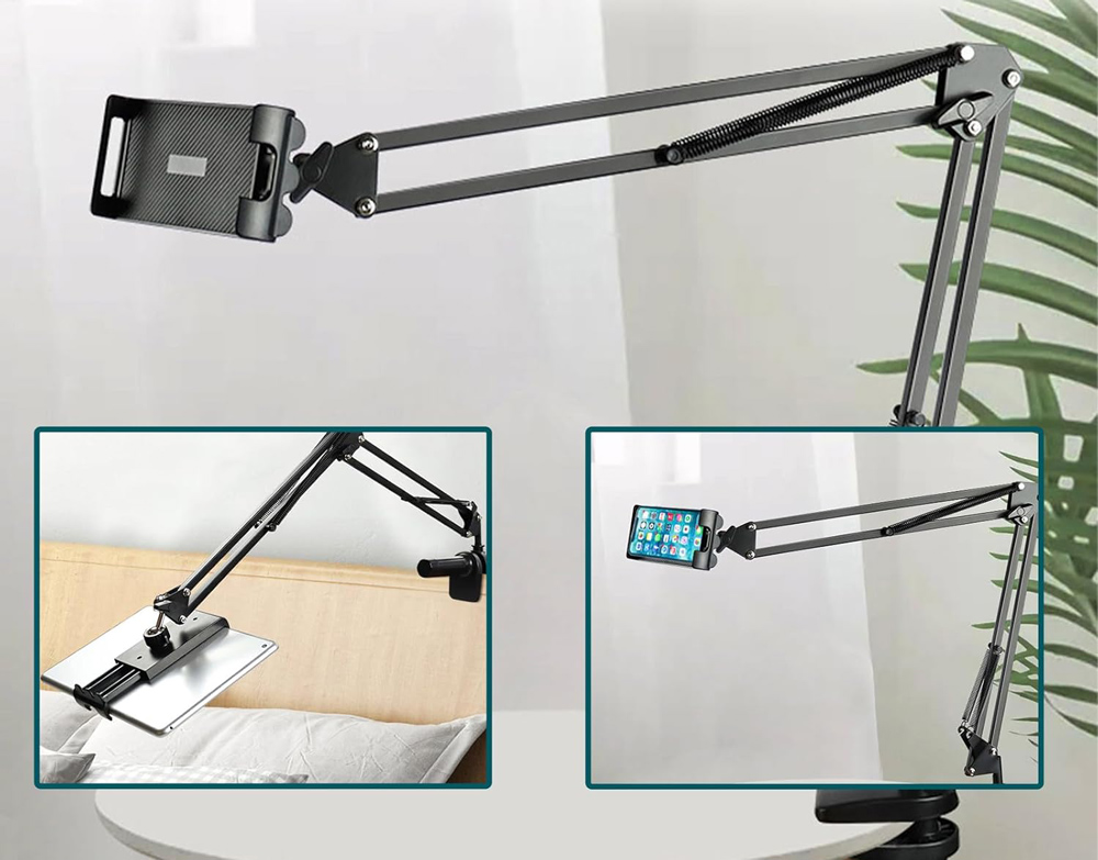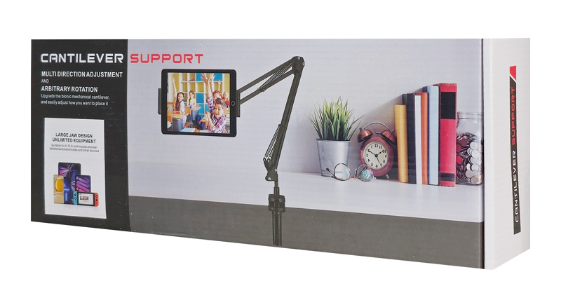 Διαθέτει ιδιαίτερα μακρύ βραχίονα ο οποίος μπορεί να περιστραφεί κατά 360°. Ο βραχίονας ρυθμίζεται σε 2 σημεία, ώστε να βρείτε το ιδανικό ύψος προβολής, ενώ μπορεί να περιστραφεί ή να αλλάξει γωνία κλίσης και το σημείο συγκράτησης της συσκευής.