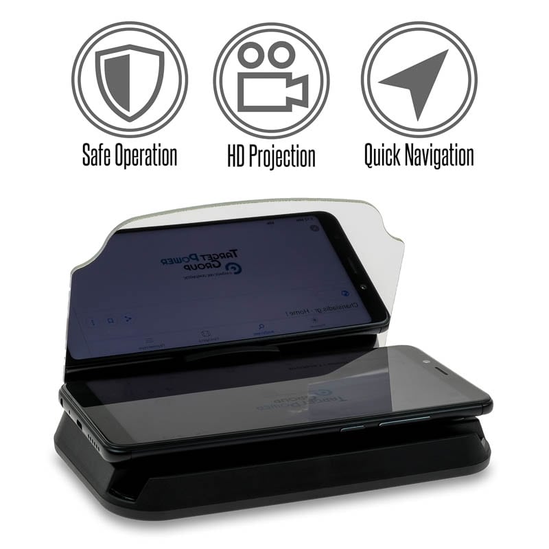 Η κινητή βάση πλοήγησης εκμεταλλεύεται το σκληρυμένο οργανικό γυαλί και χρησιμοποιεί το θεώρημα οπτικής αντανάκλασης προβάλλοντας την οθόνη του κινητού σας επάνω σε αυτό.