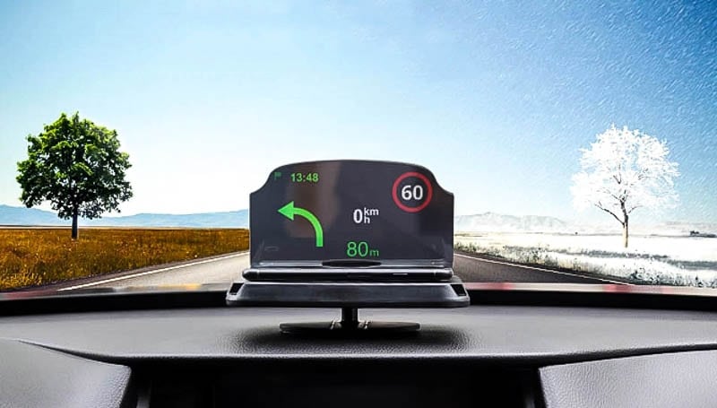 Τοποθετείται στην κεντρική κονσόλα του αυτοκινήτου χωρίς να μπλοκάρει την όραση του οδηγού καθώς η εικόνα είναι αποτέλεσμα ανάκλασης.