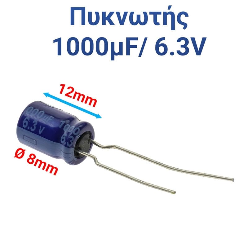 ΠΥΚΝΩΤΗΣ 1000μF 6.3V (1.2X0.8cm)