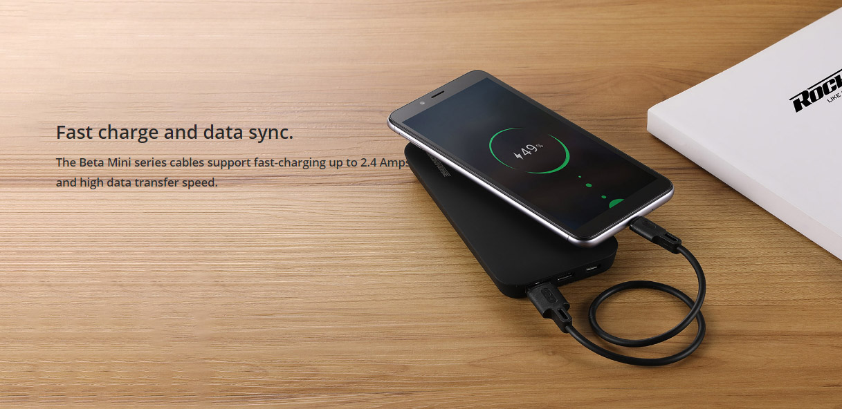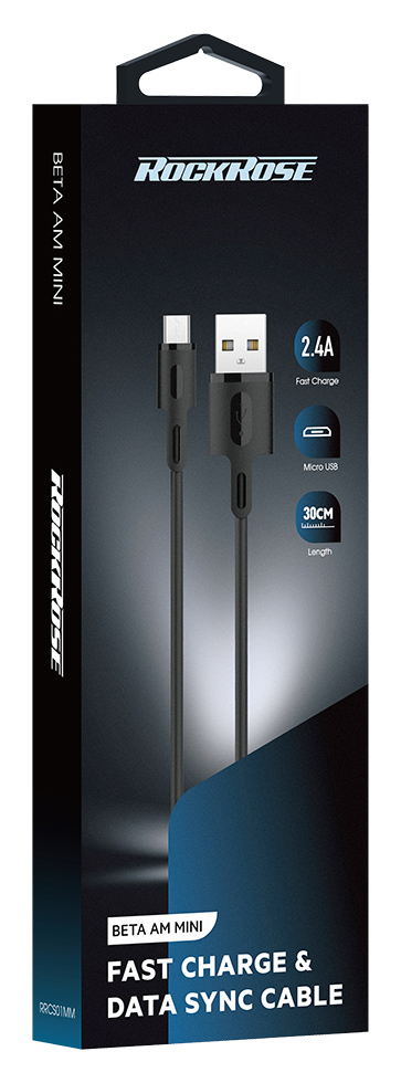 ROCKROSE καλώδιο USB σε Micro USB Beta AM Mini, 2.4A, 30cm, μαύρο