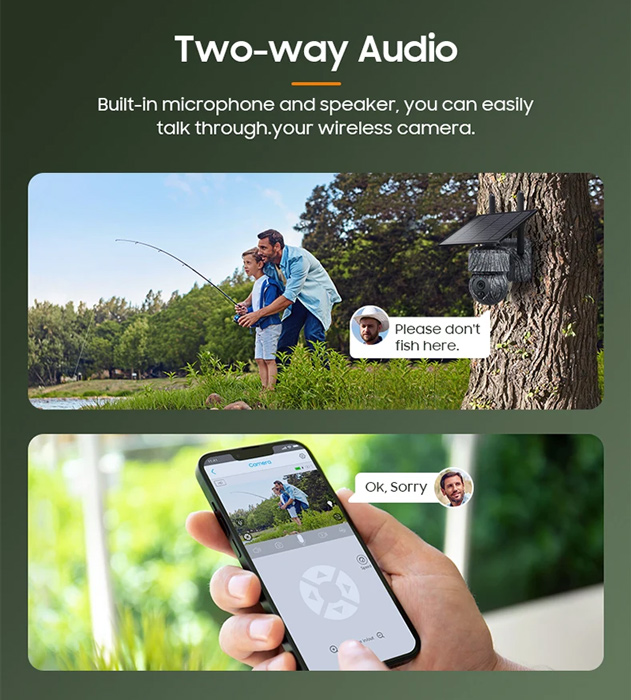 Διαθέτει αμφίδρομη μεταφορά φωνής και ήχου ενώ μπορεί επίσης να εντοπίζει ανθρώπινη σιλουέτα και κίνηση. Επιπλέον, υποστηρίζει λειτουργίες PTZ και νυχτερινή όραση με υπέρυθρα.