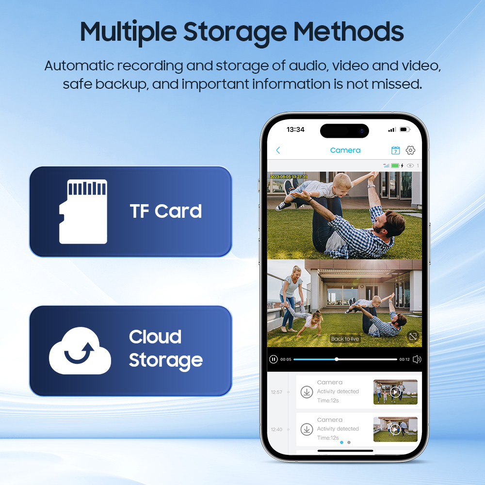 -Local storage: TF card recording (support max 128GB), the recording time can be freely selected from 5s-10s-20s-30s or full-time recording