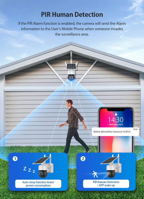 Ασύρματη ηλιακή IP κάμερα της Sectec εξωτερικού χώρου με διακριτική και μοντέρνα εμφάνιση. Διαθέτει αισθητήρα ανάλυσης 3MP και μπορεί να μεταφέρει εικόνα ανάλυσης HD. Η συσκευή διακρίνεται για την πολύ εύκολη και γρήγορη εγκατάσταση της καθώς και τον απροβλημάτιστο χειρισμό της από συσκευή smartphone απομακρυσμένα μέσω της εφαρμογής UBox. Η κάμερα διαθέτει αμφίδρομη μεταφορά φωνής και ήχου ενώ μπορεί επίσης να εντοπίζει ανθρώπινη σιλουέτα και κίνηση. Υποστηρίζει λειτουργία νυχτερινής όρασης για την παρακολούθηση ακόμη και στο σκοτάδι και τα βίντεο που καταγράφονται αποθηκεύονται εσωτερικά σε micro SD (δεν συμπεριλαμβάνεται) ή απευθείας σε λογαριασμό στο cloud. Τροφοδοτείται από 3 μπαταρίες 18650 (7500mAh) οι οποίες επαναφορτίζονται με ηλιακή ενέργεια χάρη στο ηλιακό πάνελ.