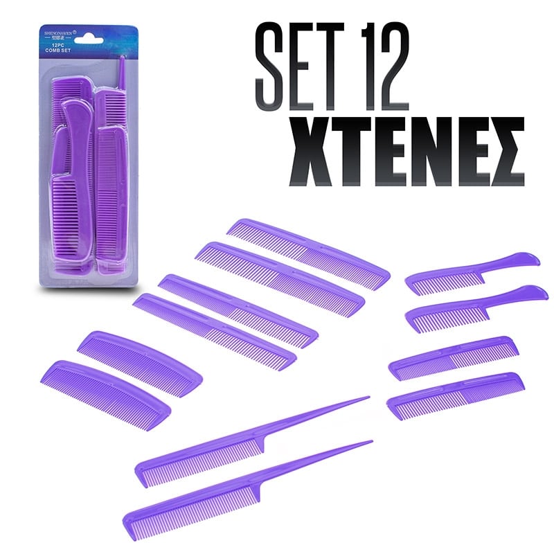 Σετ 12 τεμάχια Χτένες Πλαστικές – Λιλά
