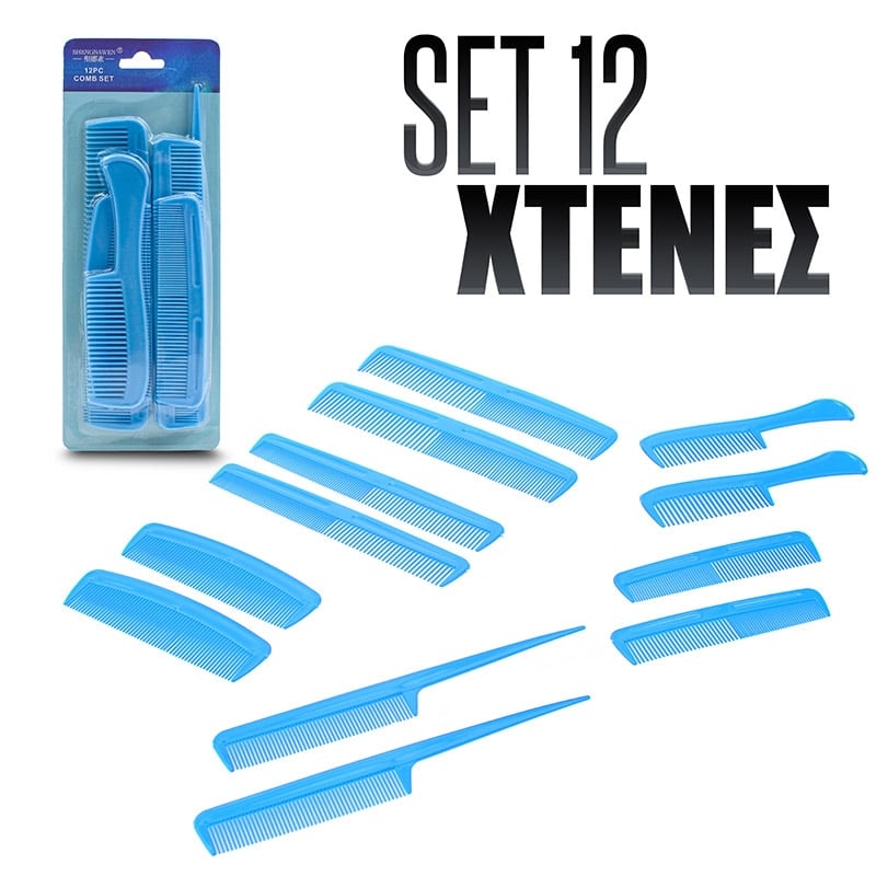 Σετ από δώδεκα πλαστικές χτένες με πυκνά δόντια.