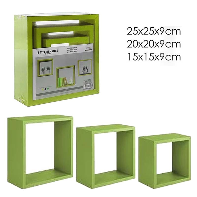 Σετ 3 Ράφια Τοίχου Κύβος Πράσινο