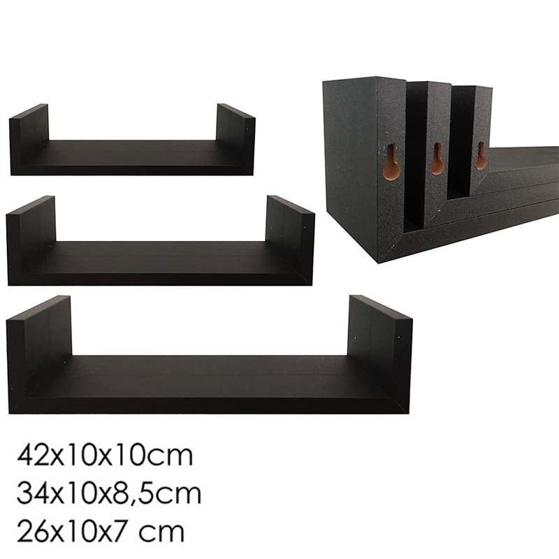 Σετ 3 Ράφια Τοίχου Μαύρο