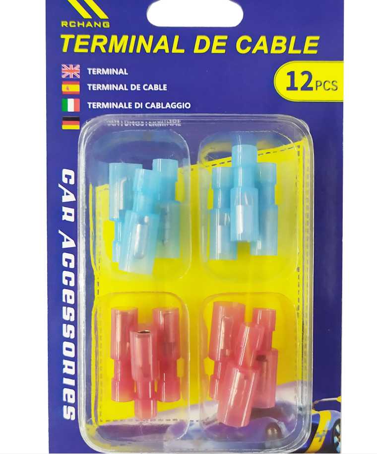 Aκροδέκτες καλωδίων κυλινδρικοί, με μόνωση. Σετ 12 τεμαχίων, αρσενικοί & θηλυκοί.