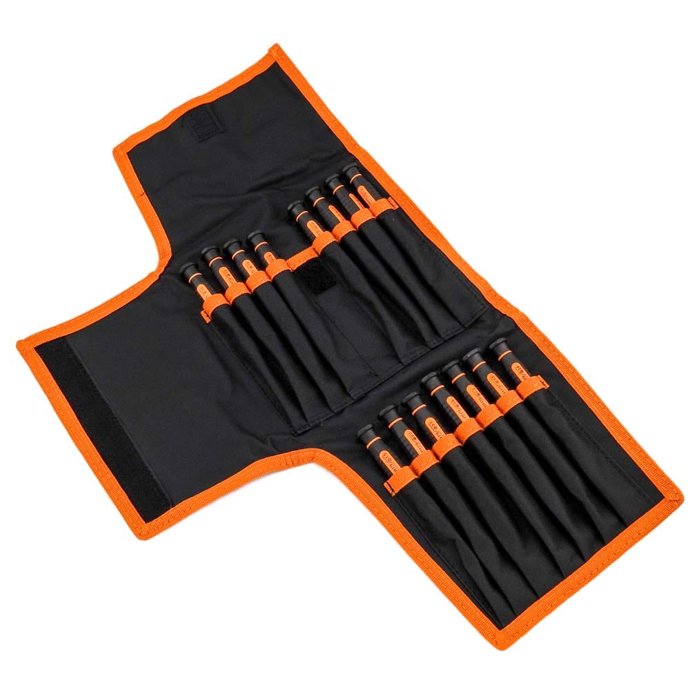 Τώρα έχετε συγκεντρωμένα όλα τα απαραίτητα κατσαβίδια που απαιτεί η καθημερινή εργασία ενός ηλεκτρονικού και τεχνικού laptop & smartphone σε μια συλλογή που αποθηκεύεται εύκολα σε υφασμάτινη κασετίνα.