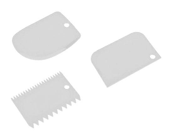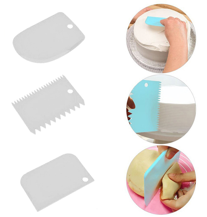 Σετ με 3 πλαστικές σπάτουλες ζαχαροπλαστικής, ιδανικές για την διακόσμηση των κέικ και άλλων αρτοσκευασμάτων.