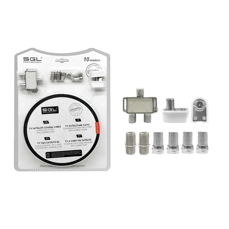 Σετ σύνδεσης κεραίας τηλεόρασης με καλώδιο μήκους 10m και διακλαδωτή 2 εξόδων. Χρώμα: Λευκό.