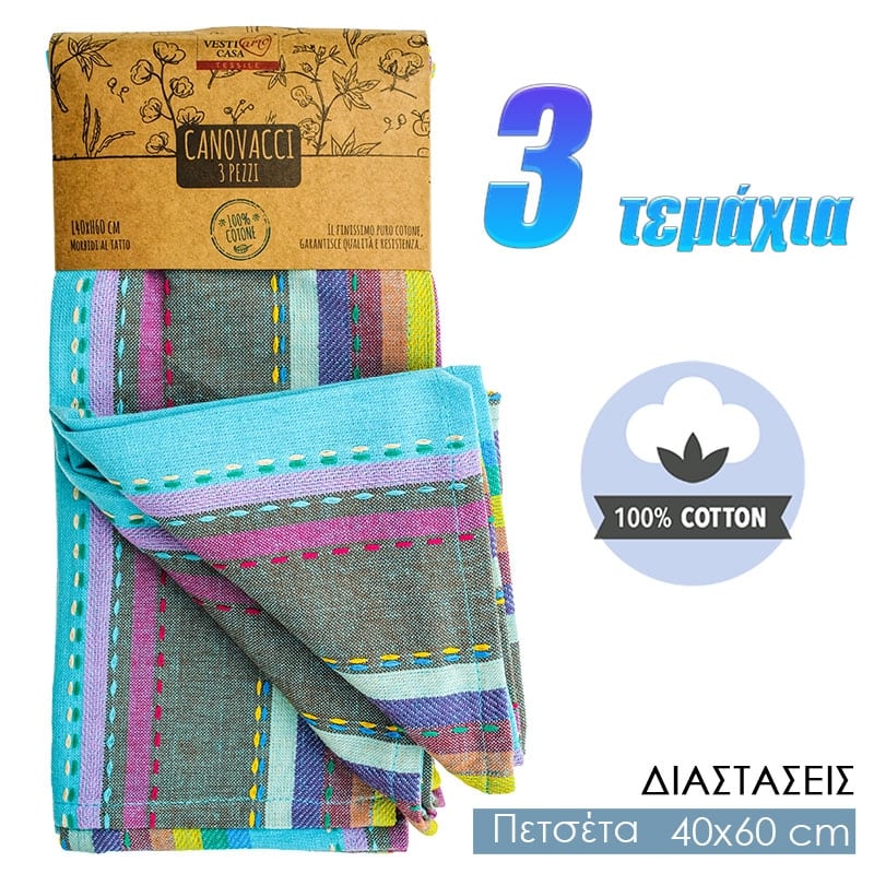 Σετ Βαμβακερές Πετσέτες με Σχέδιο 3τμχ Γαλάζιο