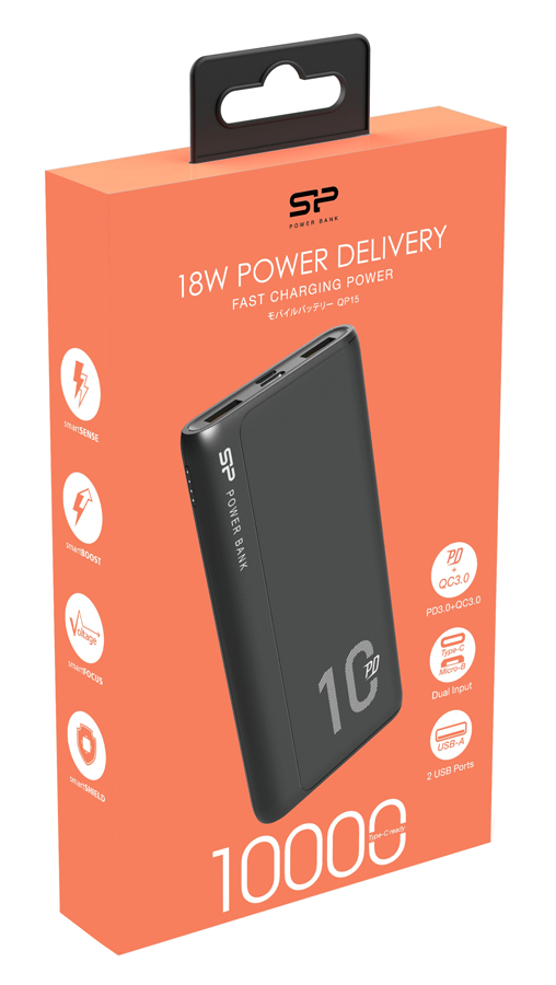 SILICON POWER power bank QP15, 10000mAh, 2x USB & USB Type-C, 3A, μαύρο