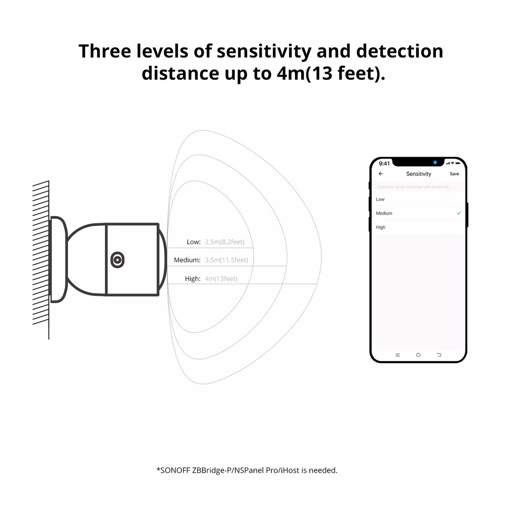 Smart ανιχνευτής κίνησης της Sonoff, σχεδιασμένος να ανιχνεύει την κίνηση του ανθρώπινου σώματος.