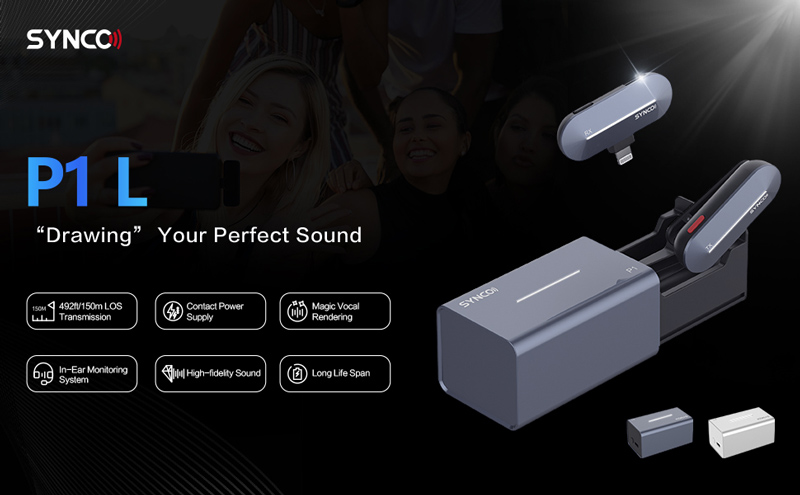 Το μικρόφωνο P1L της Synco συνδέεται ασύρματα, μέσω του receiver και της θύρας Lightning της iPhone ή iPad συσκευής σας.