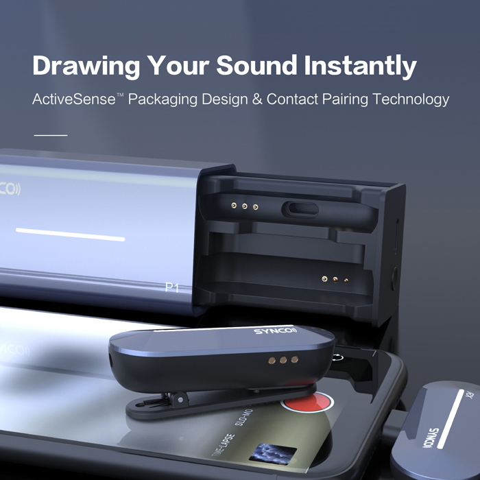 SYNCO ασύρματο μικρόφωνο P1L με θήκη φόρτισης, Lightning, 2.4GHz, γκρι