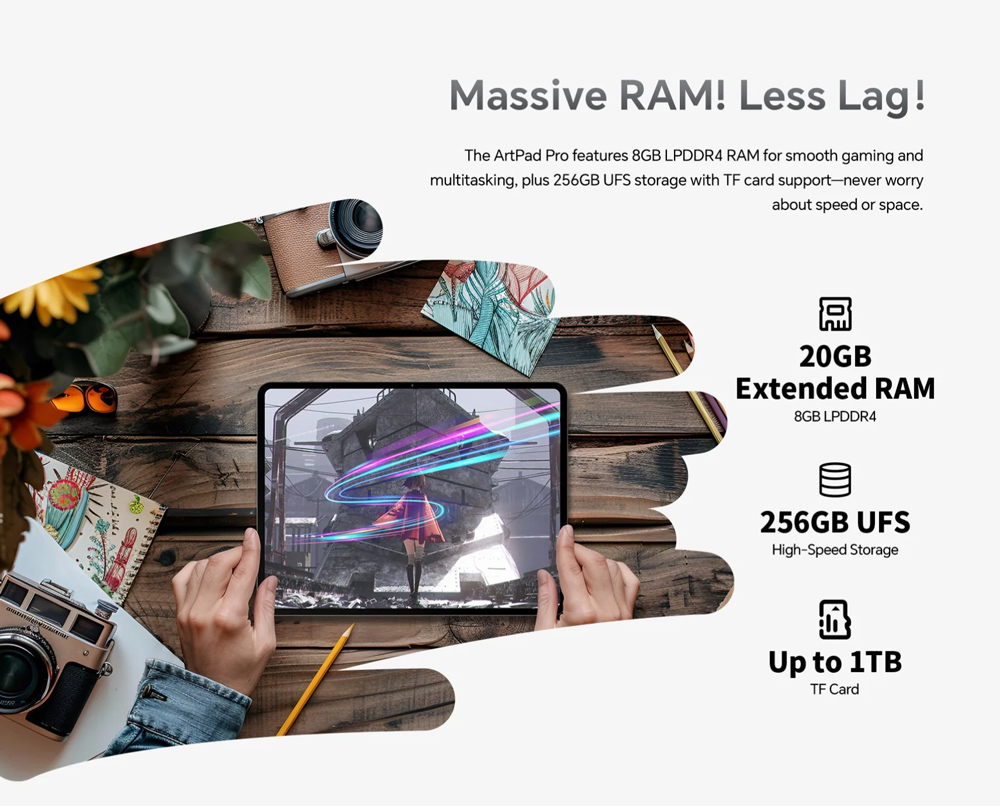Εξοπλισμένο με επεξεργαστή 8 πυρήνων και λειτουργικό Android 15, το ArtPad Pro προσφέρει υψηλή απόδοση για απρόσκοπτη περιήγηση στο διαδίκτυο, παιχνίδια, πολυμέσα και πολλά άλλα.