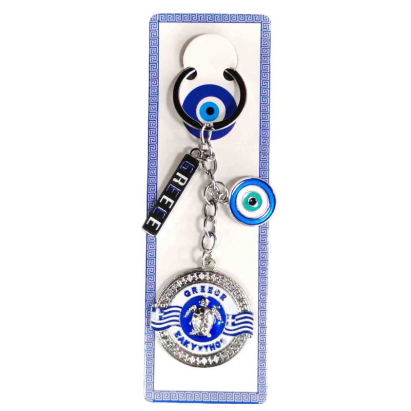 Τουριστικό μπρελόκ Souvenir Greece με ματάκι, κατασκευασμένο από ανοξείδωτο ατσάλι και υψηλής ποιότητας υλικά, με εντυπωσιακά ανάγλυφα σχέδια που αντιπροσωπεύουν την Ελλάδα. Πακέτο 12 τεμαχίων. Μήκος: περ. 12cm