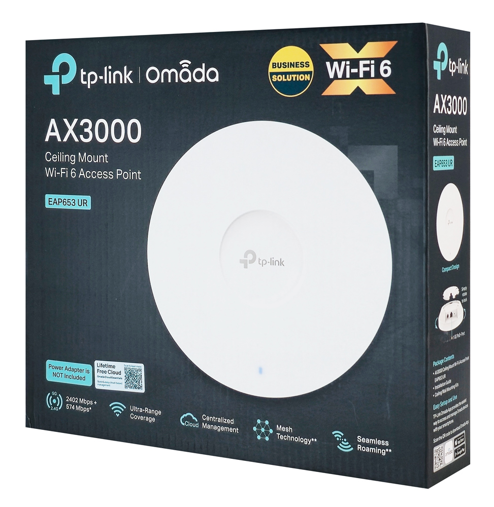 Το access point οροφής EAP653 UR της TP-LINK παρέχει γρήγορες και σταθερές συνδέσεις με ταχύτητες WiFi 6 έως 574 Mbps στα 2.4 GHz και 2402 Mbps στα 5 GHz ταυτόχρονα.