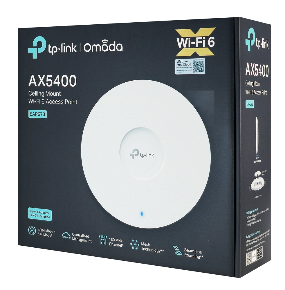 Το access point οροφής EAP673 της TP-LINK παρέχει γρήγορες και σταθερές συνδέσεις με ταχύτητες WiFi 6 έως 574 Mbps στα 2.4 GHz και 4804 Mbps στα 5 GHz ταυτόχρονα.