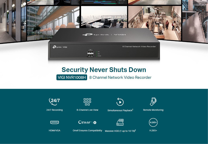 Τα καταγραφικά της σειράς VIGI από την TP-LINK συνδέονται με το σύστημα καμερών σας, επιτρέποντας της παρακολούθηση (live & playback) και την αποθήκευση των βίντεο που καταγράφονται.