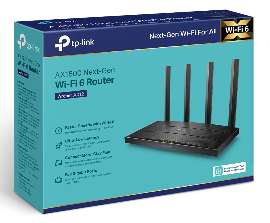 TP-LINK Router Archer AX12, WiFi 6, 1.5Gbps AX1500, Dual Band, Ver. 1.0