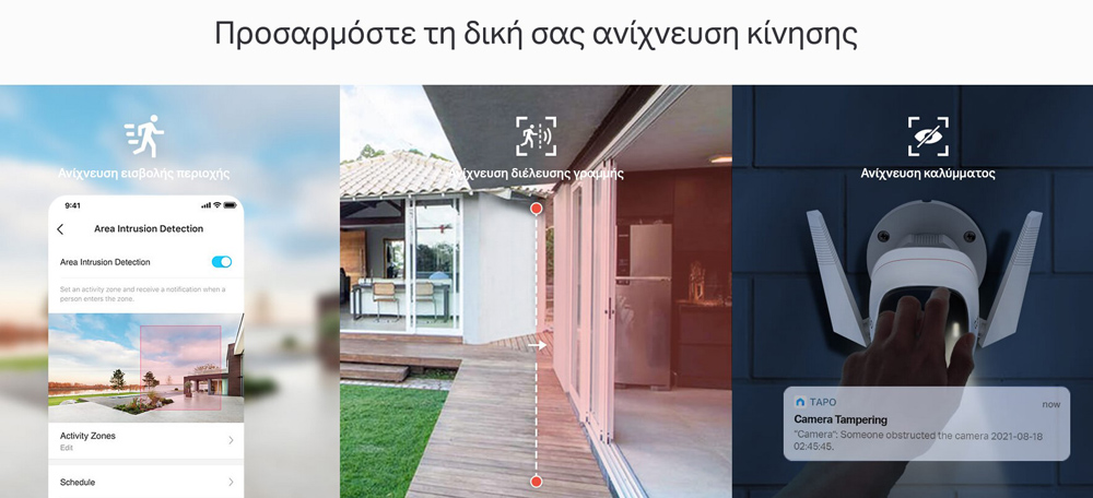 -Ανίχνευση κίνησης και ειδοποιήσεις – Σας ειδοποιεί όταν η κάμερα ανιχνεύσει κίνηση.