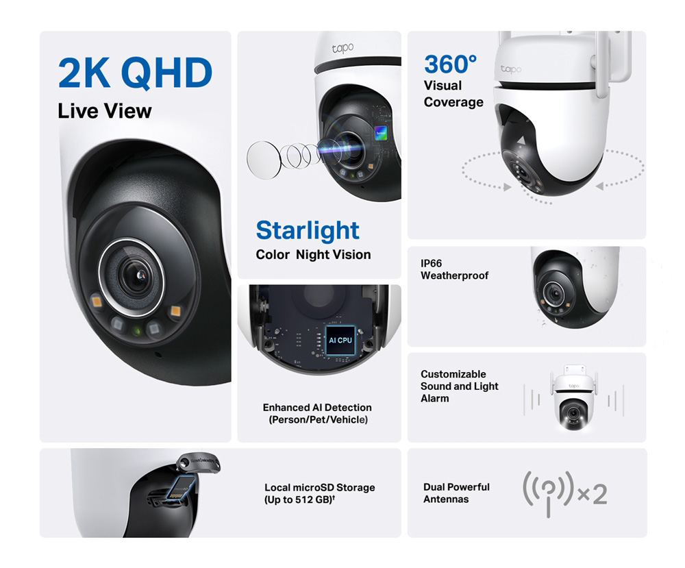 TP-LINK smart κάμερα Tapo C520WS, 2K, WiFi, PTZ, IP66, V2.0