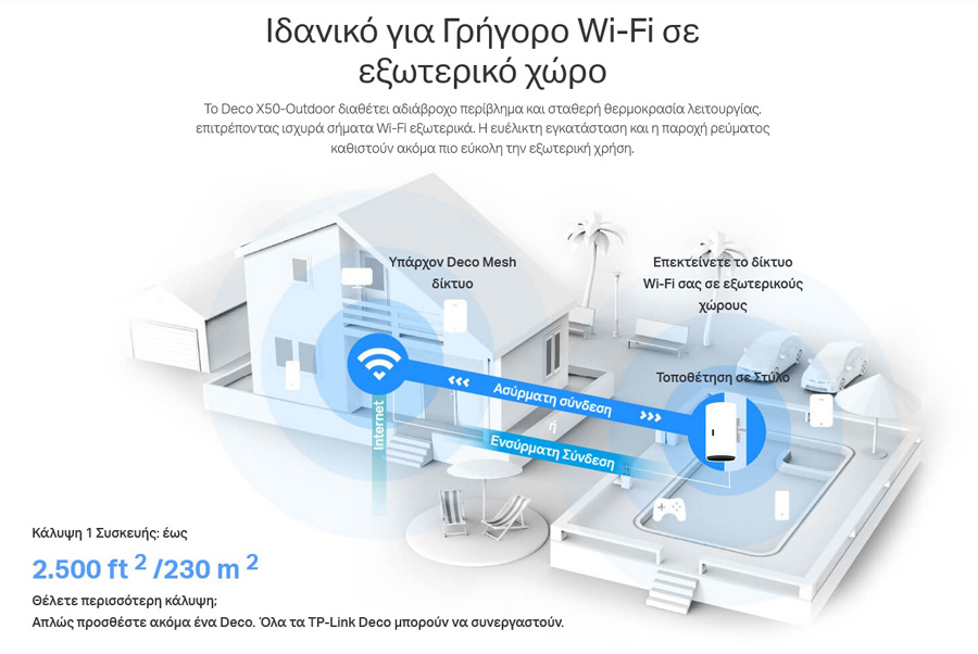 -Συνεργάζεται με όλα τα Decos – Συμβατό με οποιοδήποτε άλλο μοντέλο Deco δημιουργεί ένα Mesh δίκτυο.