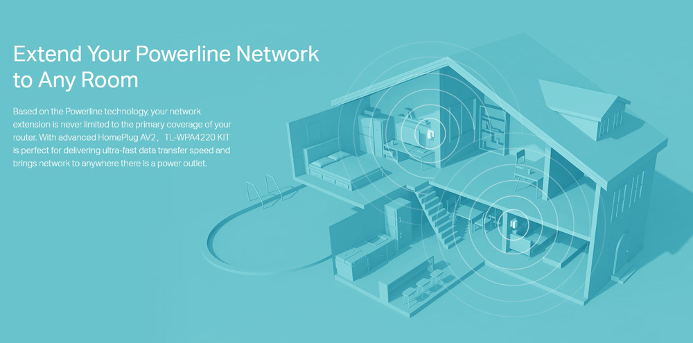 -HomePlug AV standard providing up to 600Mbps1 high speed data transmission over a home’s existing electrical wiring, ideal for lag-free HD or 3D video streaming and online gaming