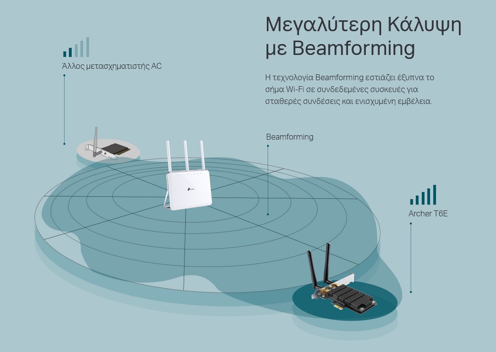 -Beamforming – Λαμβάνει περισσότερα κατευθυντικά σήματα Wi-Fi, βελτιώνοντας την ταχύτητα και την αξιοπιστία
