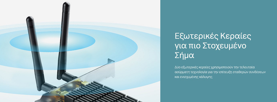 -Ευρεία ασύρματη εμβέλεια – Δύο εξωτερικές κεραίες εξασφαλίζουν μεγαλύτερη κάλυψη Wi-Fi και βελτιωμένη σταθερότητα