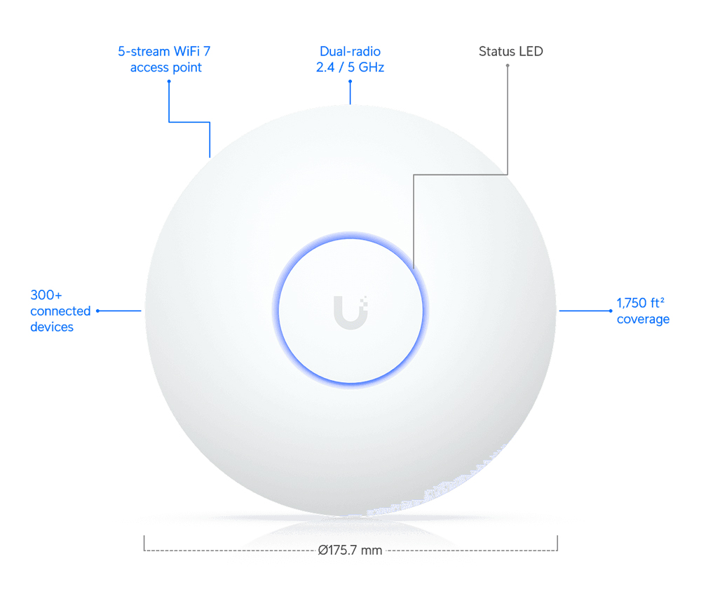 UBIQUITI Access Point UniFi U7 Long-Range, WiFi 7, Dual band, PoE