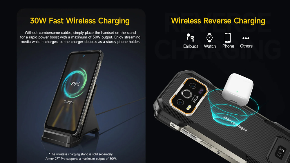 Με μπαταρία 10600mAh, το Armor 27T Pro προσφέρει μεγάλη αυτονομία, που θα σας απαλλάξει από τις συχνές αναζητήσεις τροφοδοσίας. Η φόρτιση του γίνεται με απόδοση 33W ενώ υποστηρίζει και ασύρματη φόρτιση με απόδοση 30W.