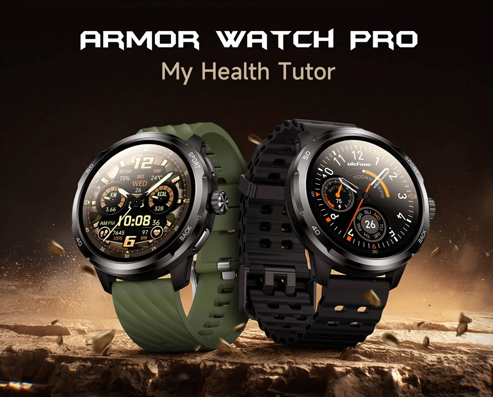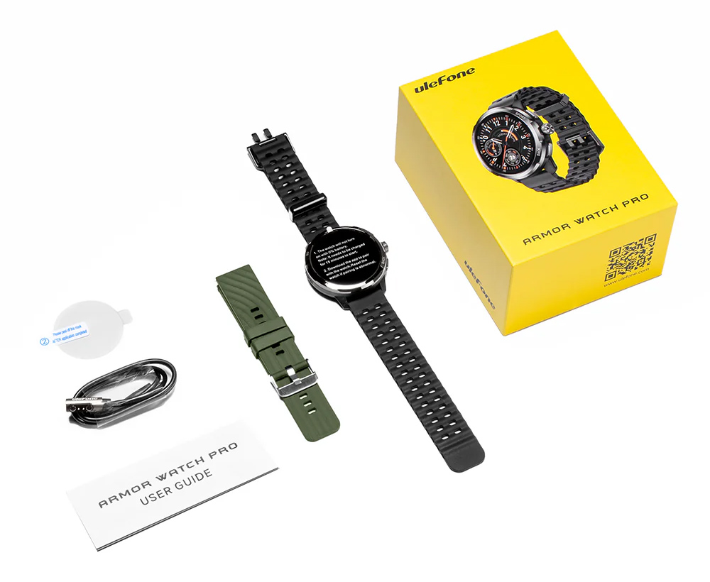 ULEFONE smartwatch Armor Watch Pro, 2x λουράκια, heart rate, 1.50″ AMOLED, GPS, 5 ΑΤΜ/IP68/IP69K/MIL-STD-810H, μαύρο