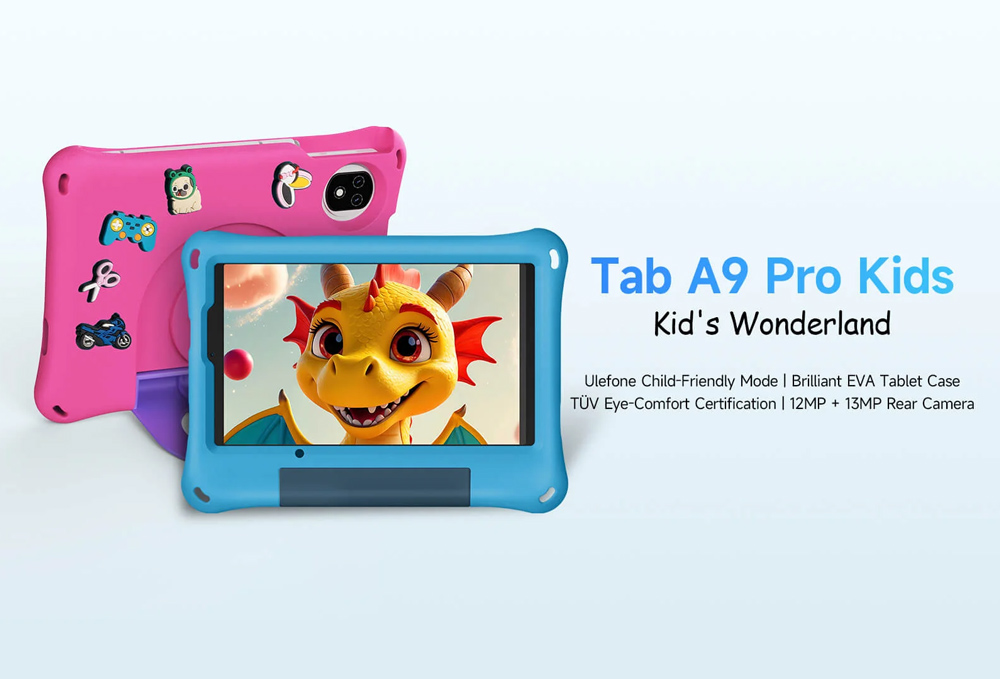 Το tablet Tab A9 Pro Kids της ULEFONE είναι ένα tablet, ειδικά σχεδιασμένο για παιδιά. Με οθόνη 8.68″, ευέλικτο σύστημα λειτουργικού Android 15 και οκταπύρηνο επεξεργαστή, το Tab A9 Pro Kids προσφέρει μια πηγή διασκέδασης και μάθησης για το παιδί.